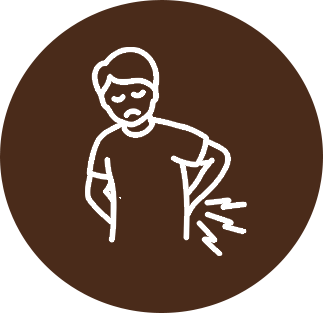 Kolikovitá bolest v břiše nebo dolní části zad doprovázená nevolností v důsledku ledvinových kamenů.